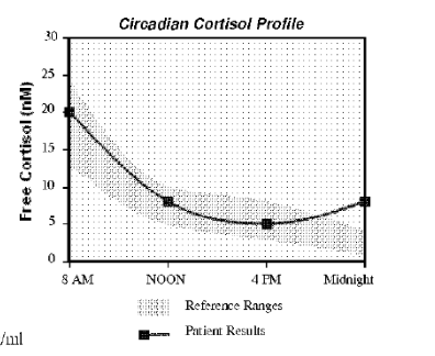 abnormal cortisol levels at different times of the day. Cortisol is one of